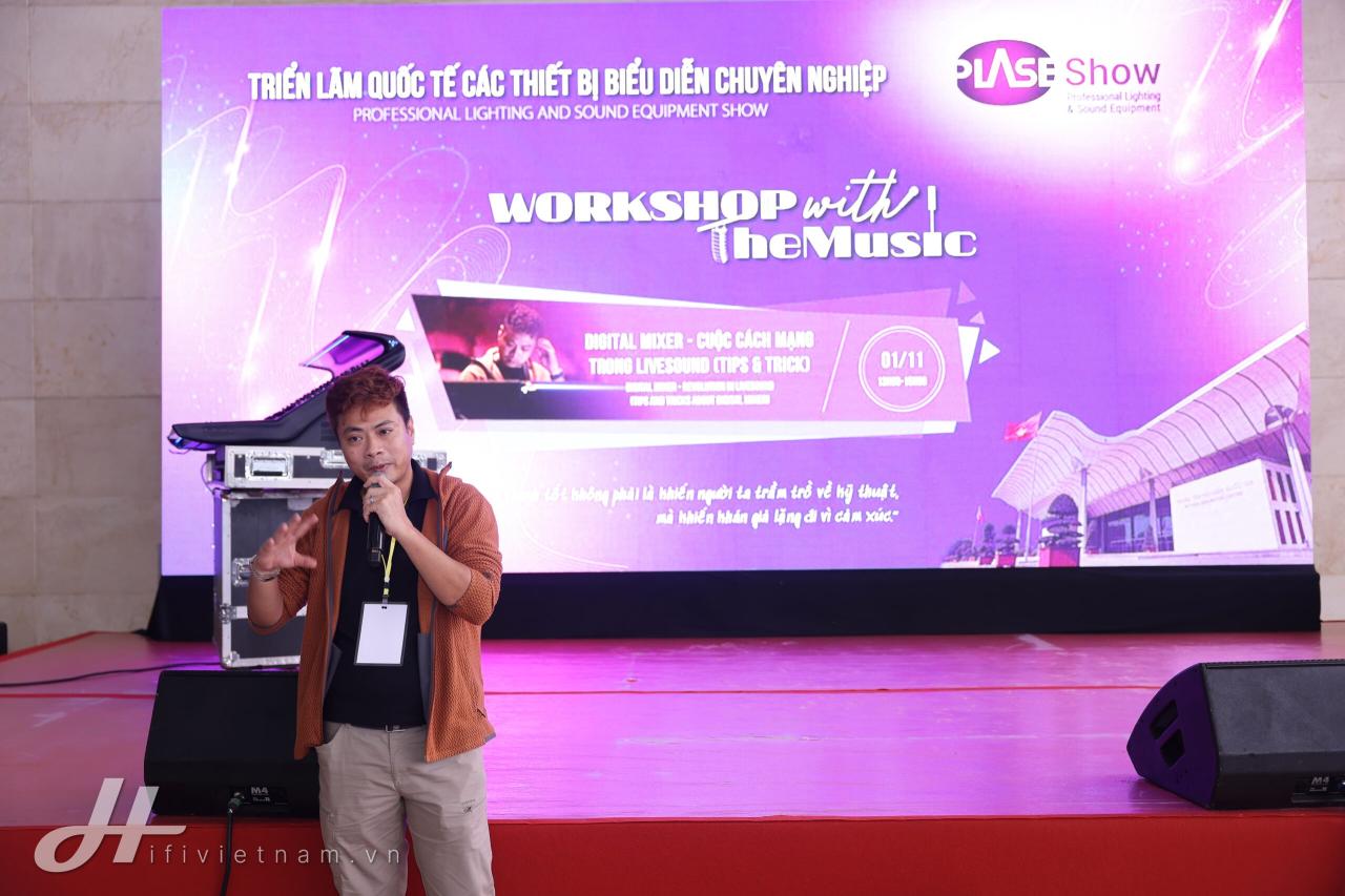 Với hơn 20 năm kinh nghiệm phụ trách âm thanh cho các chương trình concert lớn trong nước và quốc tế, buổi workshop với chủ đề Digital Mixer với tinh thần chia sẻ cởi mở, là cơ hội vàng để khách tham quan và người làm nghề được trao đổi trực tiếp, giải đáp thắc mắc và tiếp thu những kinh nghiệm thực tế quý báu, từ đó nâng cao tay nghề và áp dụng công nghệ tối ưu vào công việc.